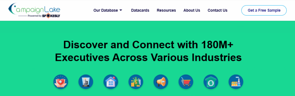 CampaignLake specializes in healthcare, finance, real estate, technology, retail, and manufacturing — with tailored lists for over 40+ industries.